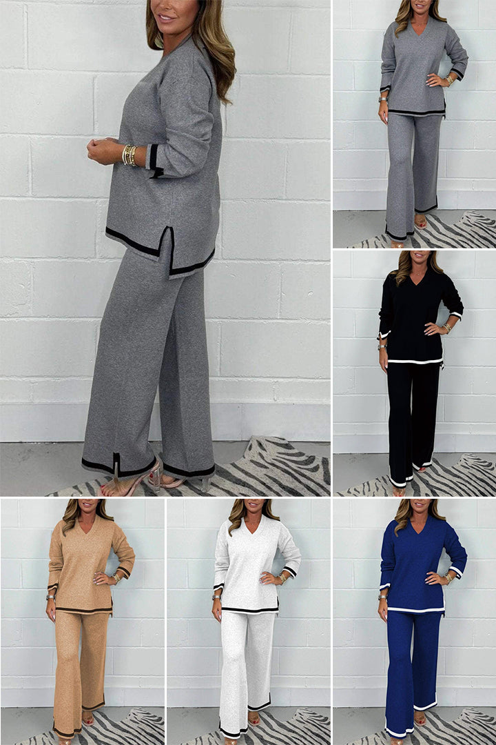 💕LAST DAY SALE 49% OFF💕Women's V-Neck Soft Knit Border Edge Trouser Set
