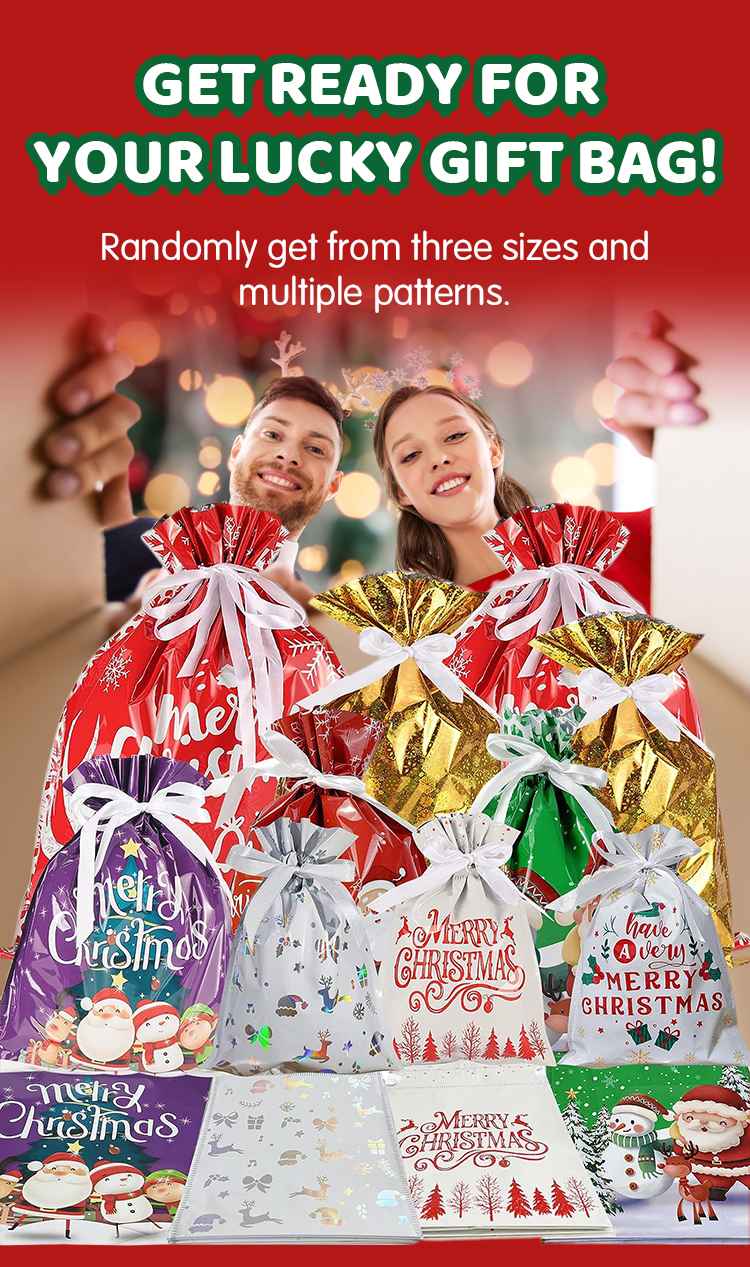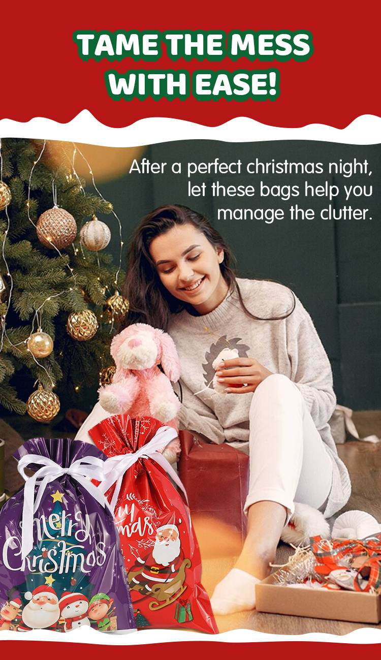 No messing with wrapping paper and tape and scissors, no worrying about trying to do a neat job on something that's just going to get torn up and thrown away. Our Christmas gift bags come with pretty ribbons which can help you store things quickly, provide a beautiful finished look for your gifts.