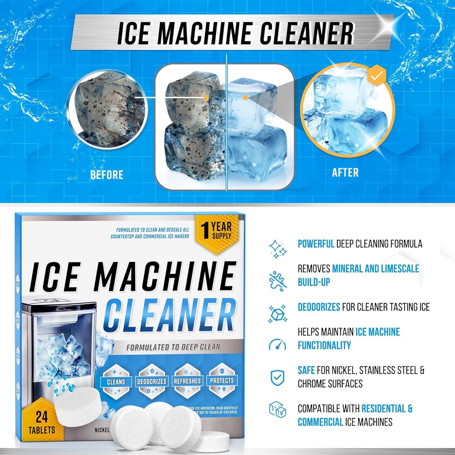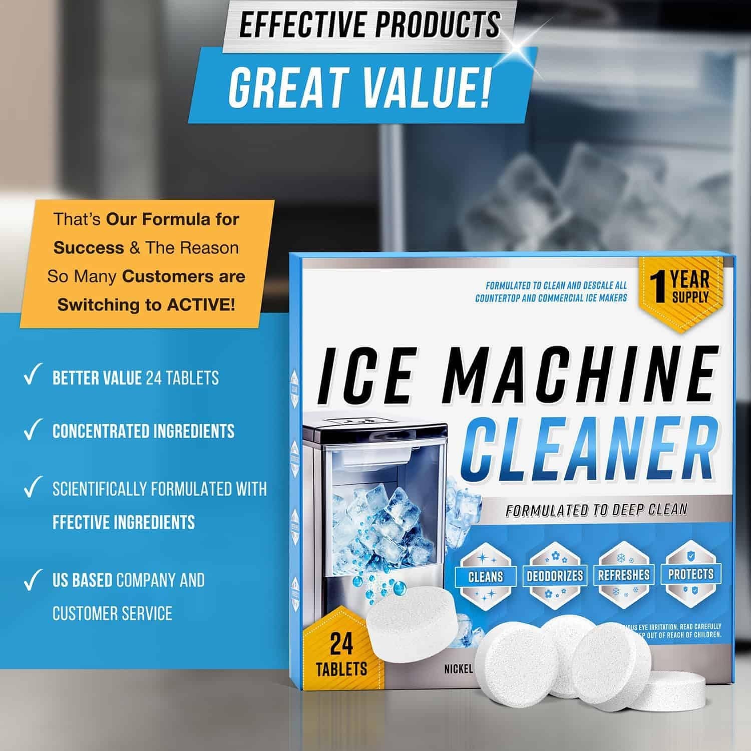 Packing: 2/4/7/10 Sets * Ice Machine Cleaner Maker Descaler(Each Set Includes 12pcs)