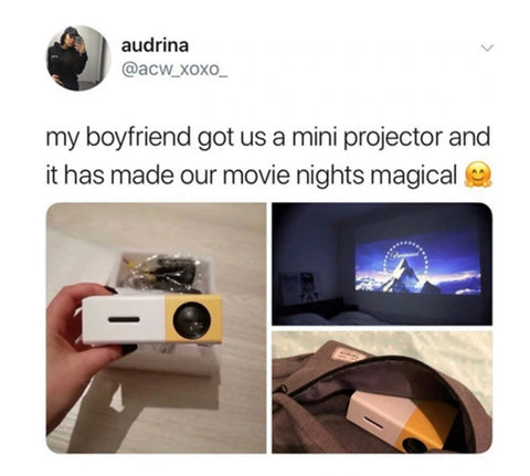The Mini HD Projectoris the best date idea in the books! Grab your significant other, find a movie, andcuddle all nightwhile watching movies on your ceiling.The perfect first date idea?
