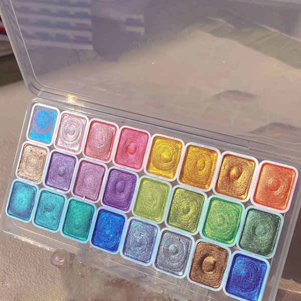 - Giving watercolor projects a fresh shine and shimmer is now easier than ever!All colors are finely milled with mineral mica pigments as well as natural gum Arabic. Each color is given a shimmering effect, allowing your creations to shine in this watercolor set.