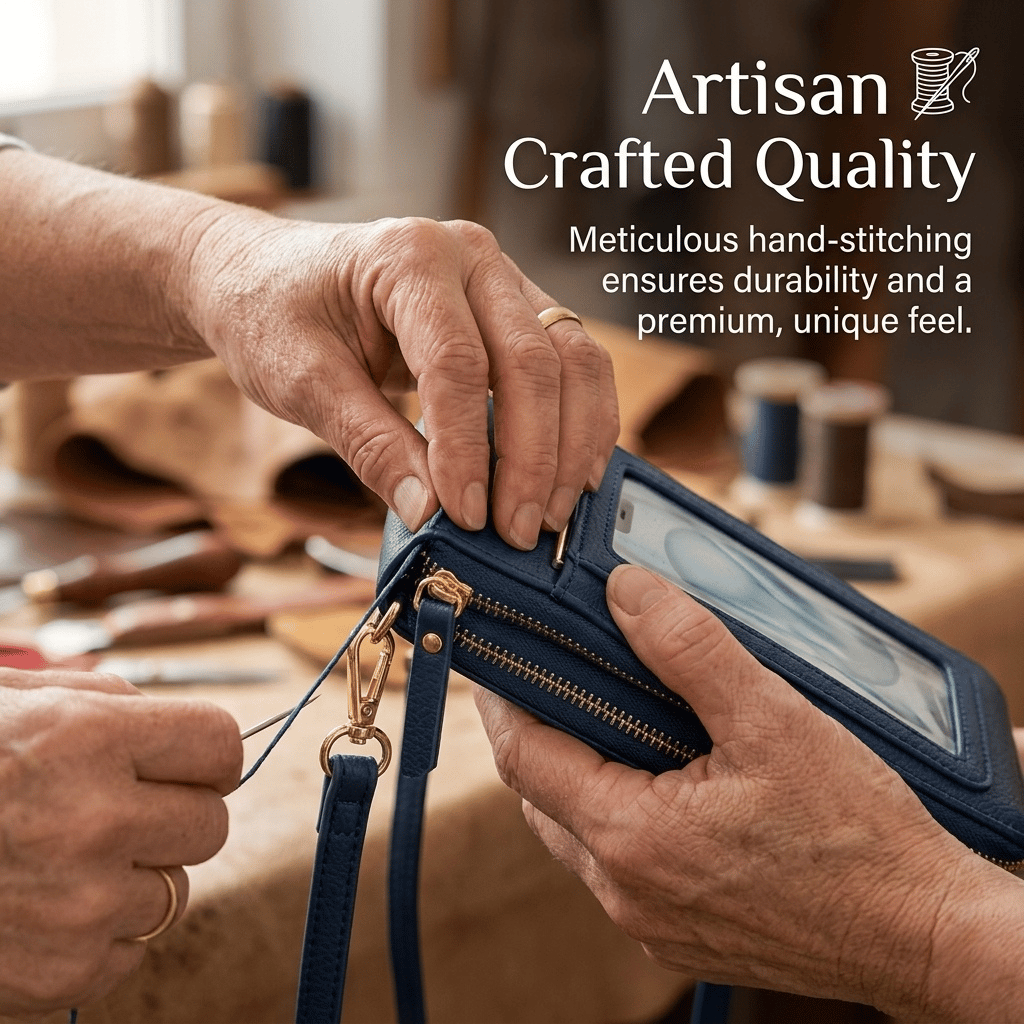 and precision. Every bag is artisan-made, featuring meticulous stitching that ensures the durability and unique, premium feel that only true hand-stitching can provide.