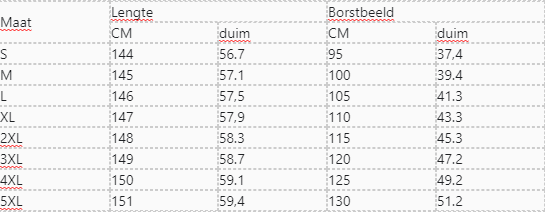 SIZE CHART: