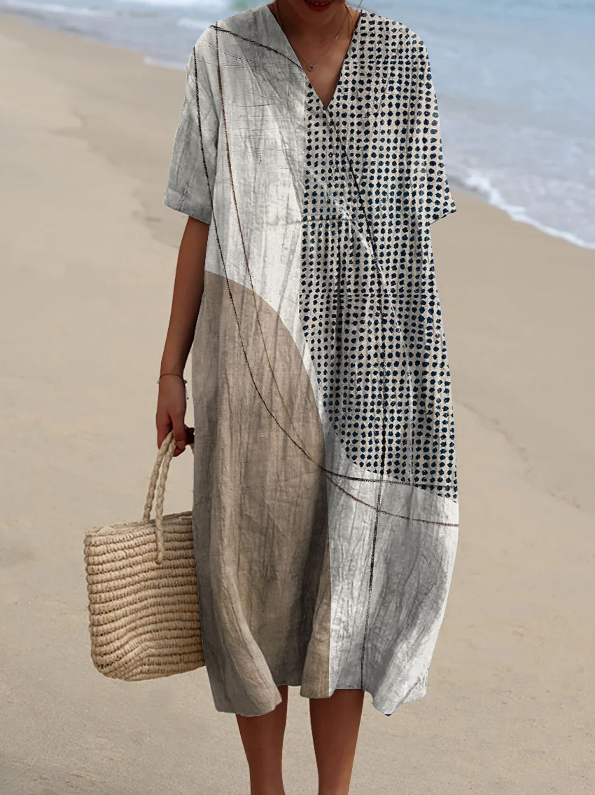 Women's Abstract Pattern Art Print Flowy Cotton Dress