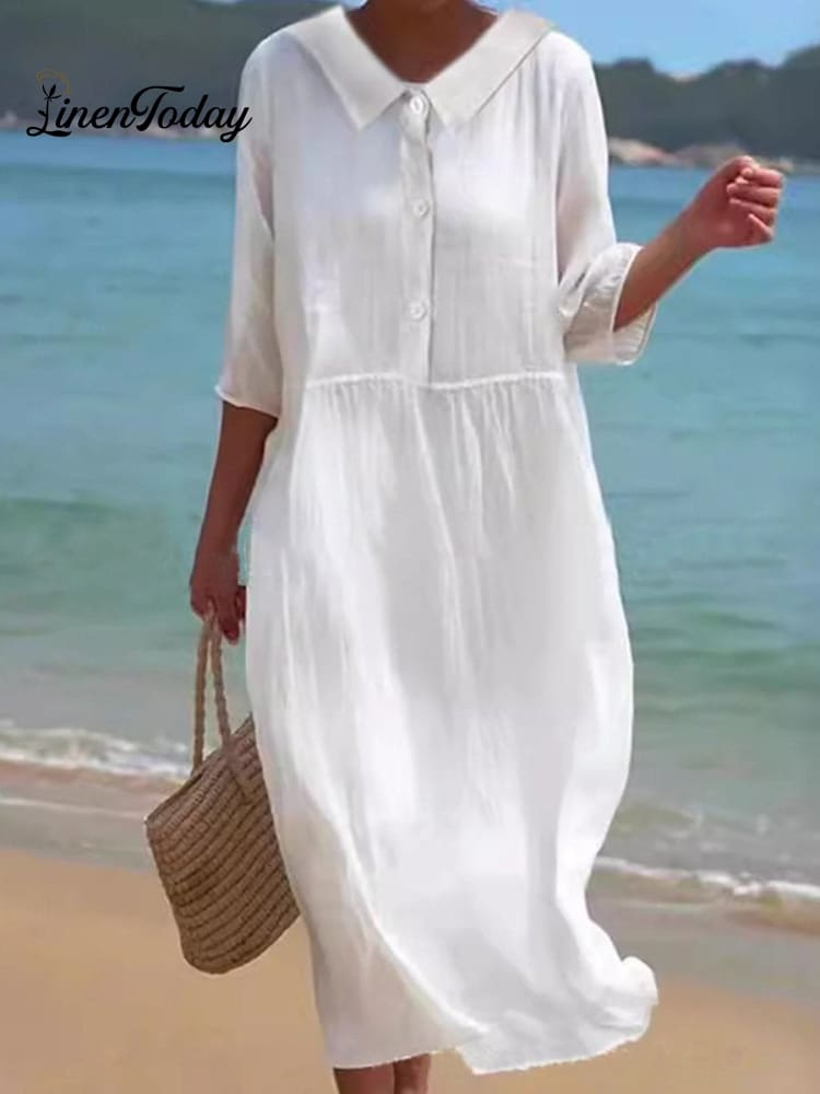 Women's Solid Color Cotton And Linen Doll Collar Dress